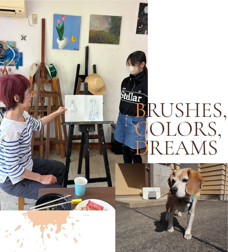 パステルで色を塗る素晴らしさを知り、看板犬ジャスミンくんにも癒されて毎週通うのが楽しみです。
