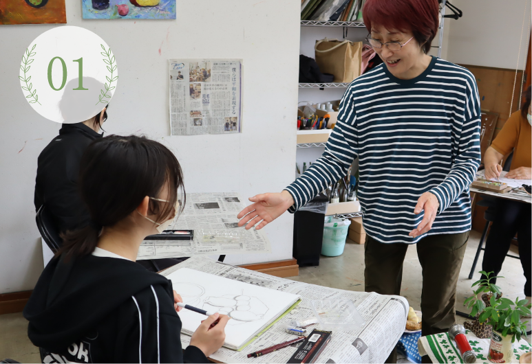 一人ひとりに合ったきめ細やかな指導 - 自由に選べる画材